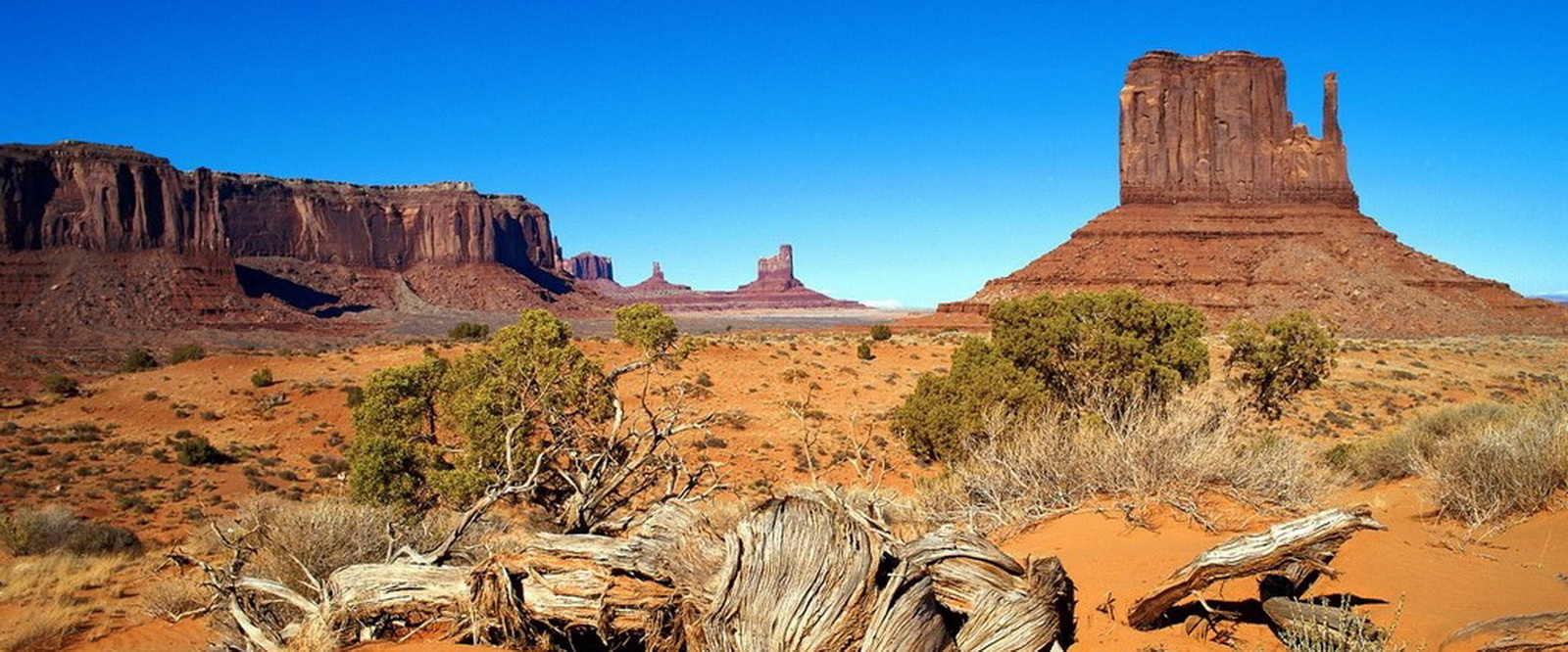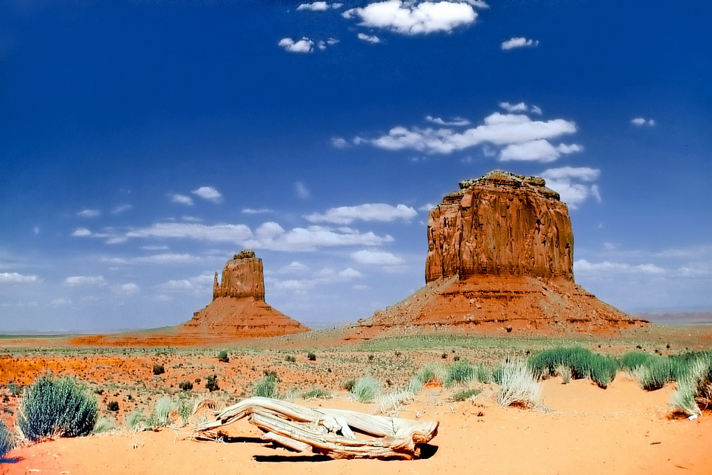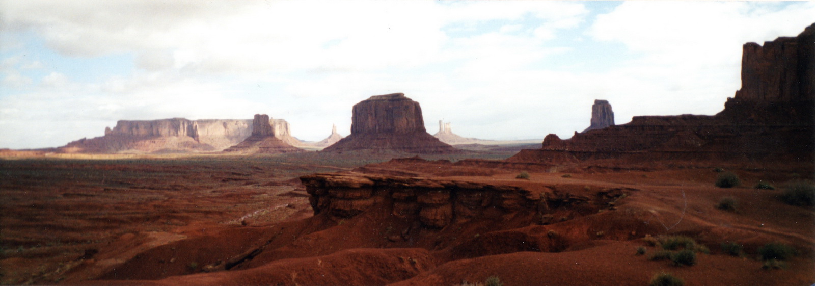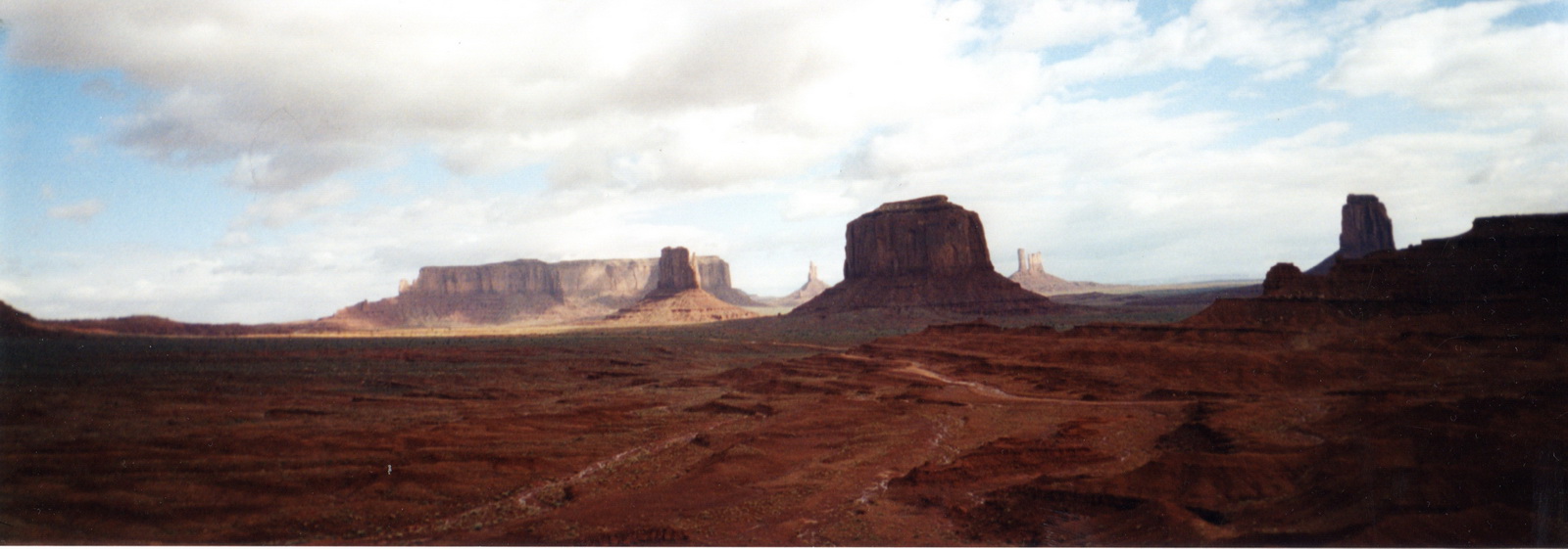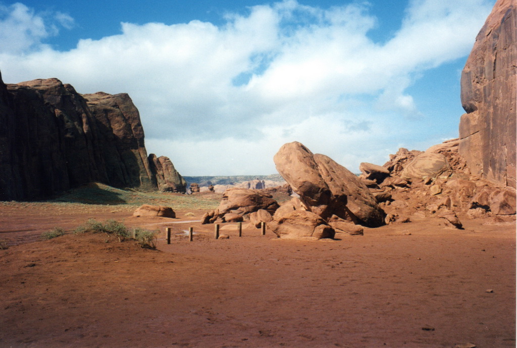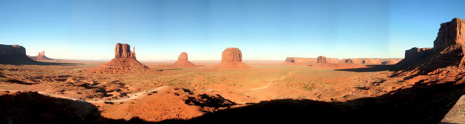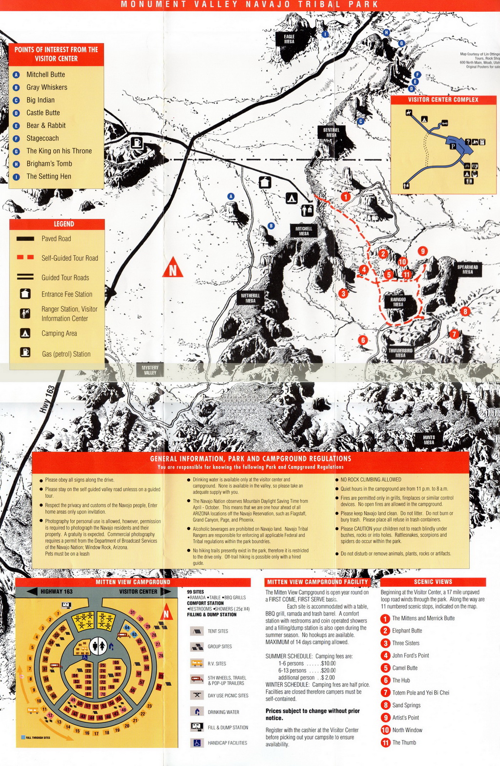Notre guide navajo commence la visite et nous explique les différents noms donnés aux "Mesas" (les grandes falaises de pierre) tels que Raingod Mesa, Mitchell Mesa, Thunderbird Mesa, ... ou aux "Buttes" (les pitons rocheux esseulés) tels que Mitchell Butte, Big Indian, The King on his Throne, Three Sisters, Elephant Butte ...