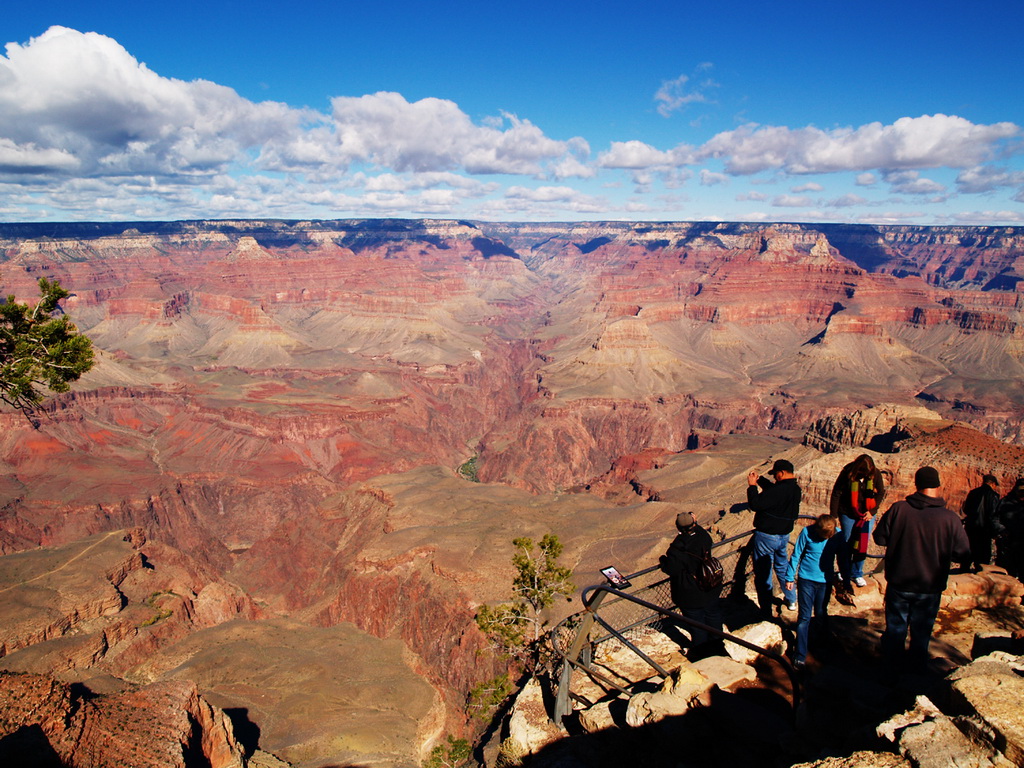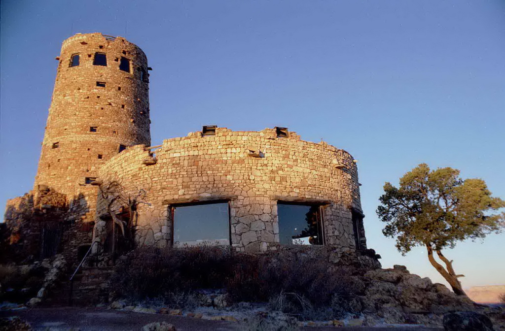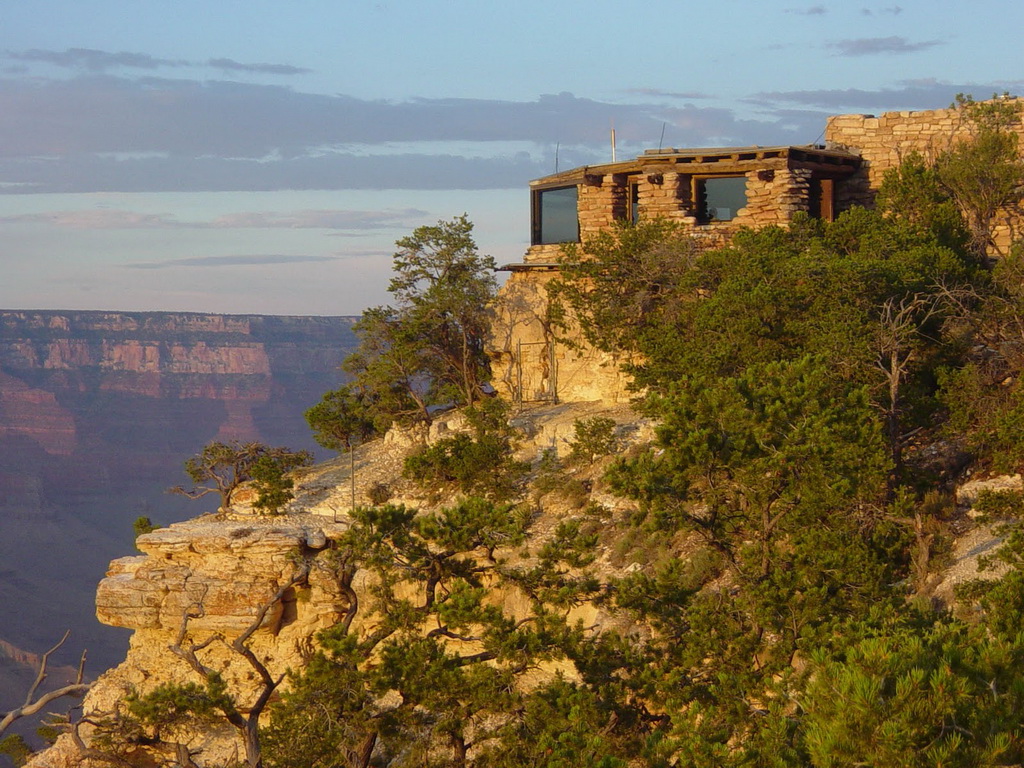 De nouveau levés tôt. Aujourd'hui nous avons prévu de visiter une nouvelle fois le "Grand Canyon", puis direction vers Kayenta et "Monument Valley".Le temps n'est pas très beau mais nous nous arrêtons au "Yavapai Observation Station", sorte d'observatoire accroché au flan de la montagne et duquel, soit au travers des baies vitrées donnant sur le canyon, soit depuis la terrasse au sommet de la tour, on peut avoir une vue incomparable sur le "Grand Canyon".