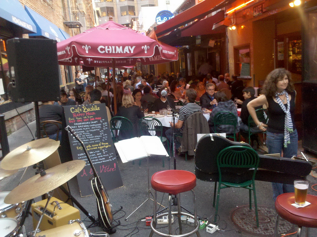 Nous prenons un peu de repos et choisissons dans l'annuaire un restaurant français où nous mangerons ce soir. Ce sera le "Café Bastille" qui se trouve dans une petite ruelle qui ressemble beaucoup à la rue de la Roquette à Paris. Le français semble être la langue de rigueur et nous nous retrouvons au sous-sol, servis par des serveurs français. La nourriture (boudin, gratin dauphinois, ...) est très bonne.