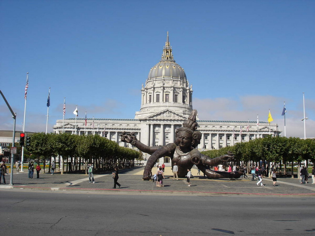 Nous commençons notre visite du centre ville avec "Union Square" et le "Civic Center" où se trouvent la mairie, l'auditorium, l'opéra et la bibliothèque autour d'une même place.Vers 15h00, nous revenons vers l'hôtel en passant par Chinatown, puis nous prenons possession de notre chambre située au 23ème étage. Depuis la fenêtre, nous avons avons une magnifique vue sur tout San Francisco (Coit Tower, Fisherman's Wharf, Russian Hill, etc ...).